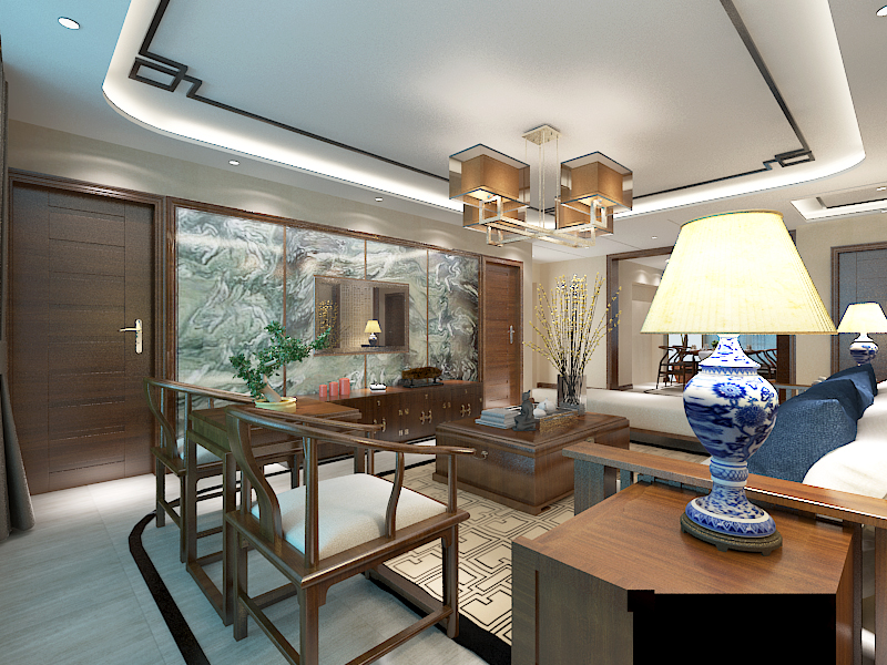 本案中的145平米的四居室整體采用了中式風格裝修,過對傳統文化的解讀,將現代元素與傳統元素結合,以現代人的審美需求來打造富有傳統韻味的細節。風塵俱靜,禪味悠長。